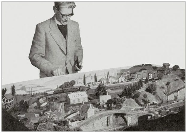 The Rev Wilbert Awdry “controlling” Thomas on the Ffarquhar Branch in Railway Modeller, December 1959. [21]