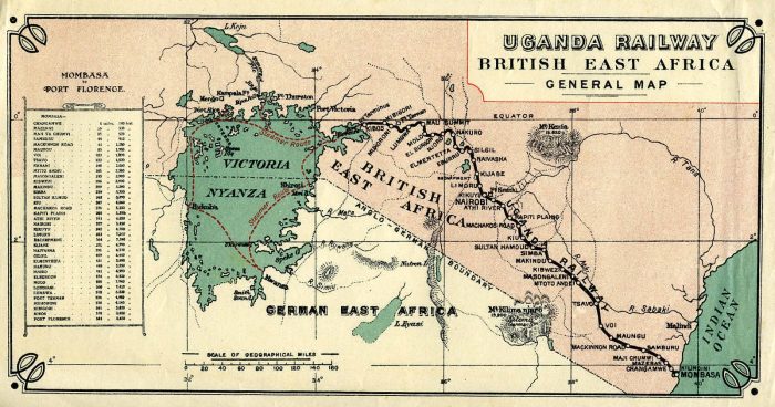 I recently picked up a copy of each of the two volumes of ‘Permanent Way‘ written by M.F. Hill and published in 1949. The first volume [1] is a history of ‘The Uganda Railway’ written in the 1940s when the railway company was known as ‘The Kenya and Uganda Railways and Harbours’ and published at the end of that decade under the jurisdiction of the new ‘East African Railways and Harbours’ which was formed to formally include the infrastructure in the modern country of Tanzania.