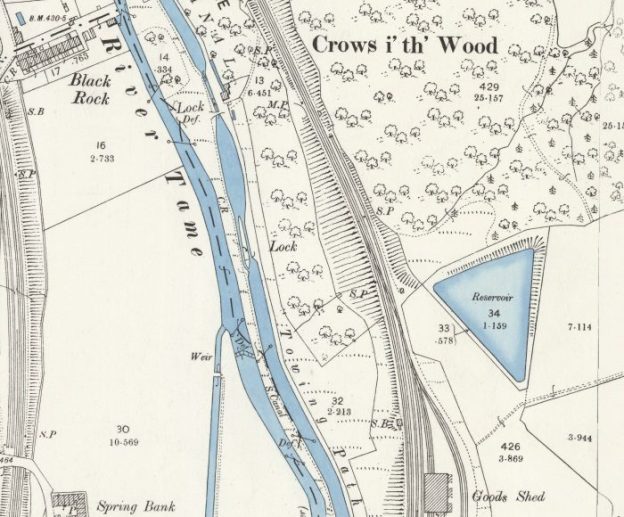 The two photographs above are taken at the East end of the parapets of the subway bridge shown in the top-right of the adjacent 25″ OS Map extract. [22]