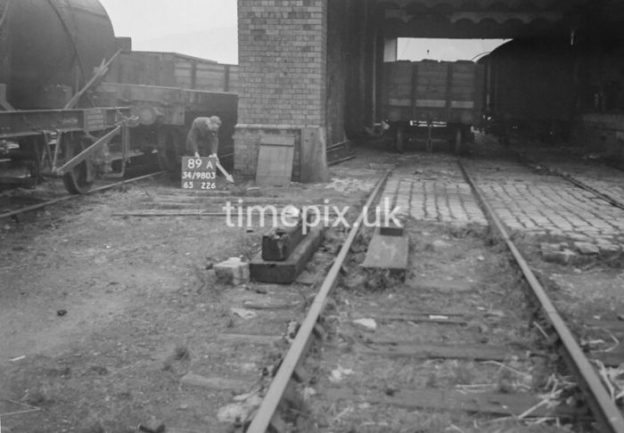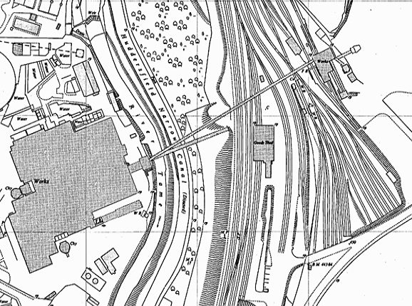Another extract shows some interesting detail. The site boundary can be picked out, a double slip is visible on the internal Works railway and, in 1951, plenty of private owner wagons and two different types of tank wagon. [10]