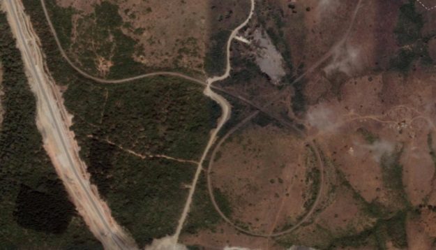 The next few images focus on the bridge shown in the top-right of the map extract above. The first comes from the aerial image above. [2]