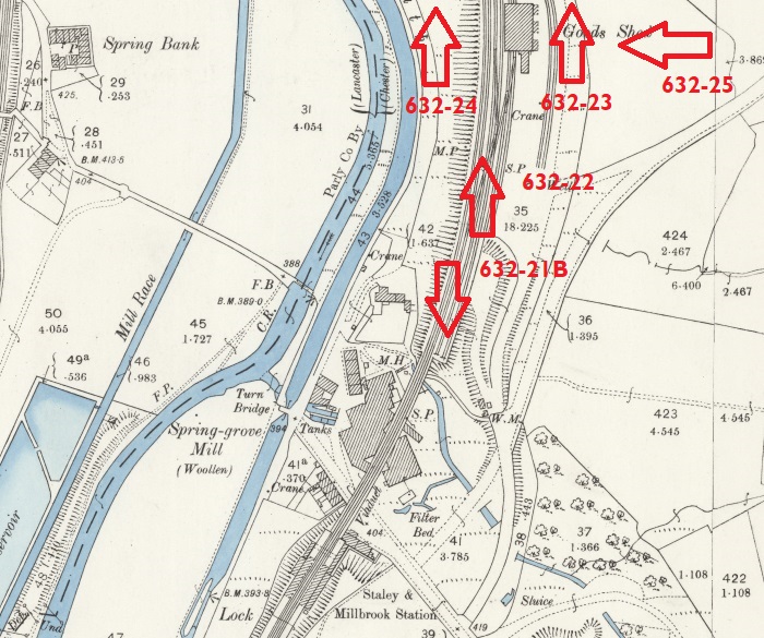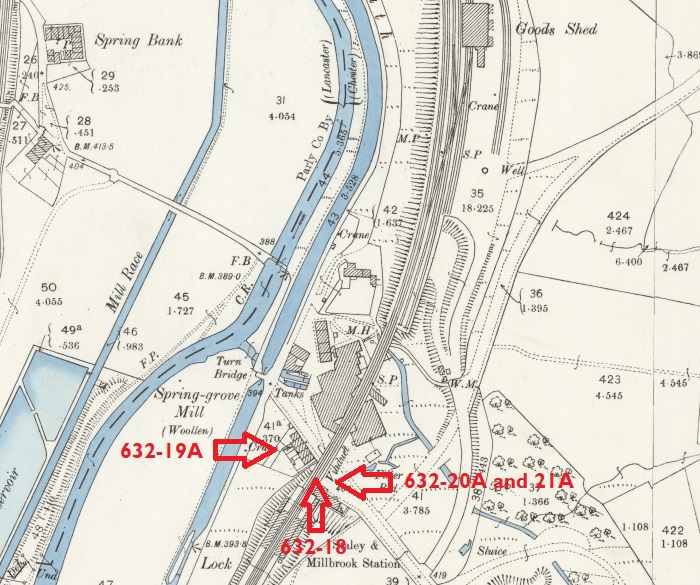 The next map extract shows the two railway lines with Roaches Bridge in the bottom left quadrant and two further mills: