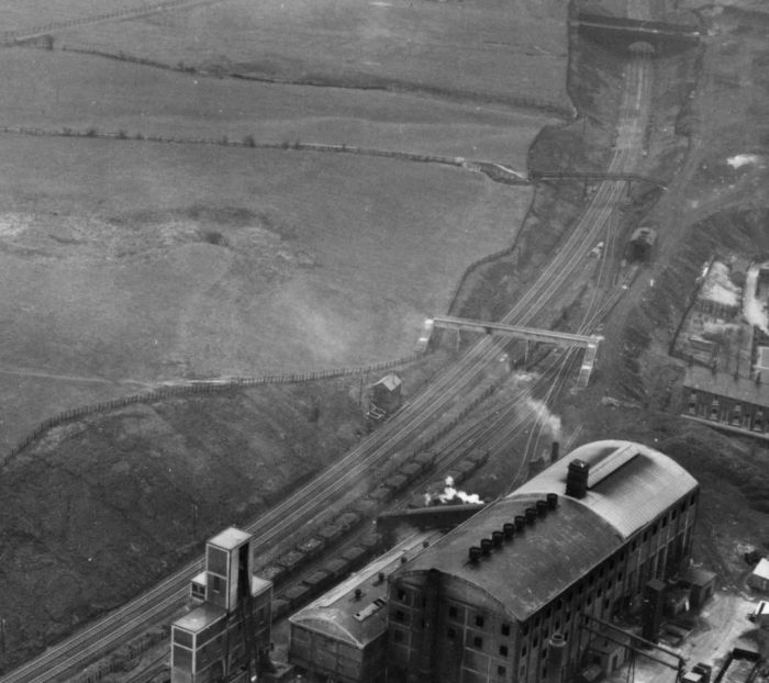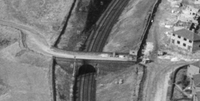 A further enlarged extract from EAW010809 from the Britain From Above website. This shows the three bridges on the Micklehurst Loop alongside Mossley Gas Works and before the Line entered the Royal George Tunnel. [2]