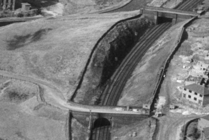 The Royal George Tunnel Southern Portal – the portal and Wingwalls were made of blue engineering brick, like other structures on the Line. [21]