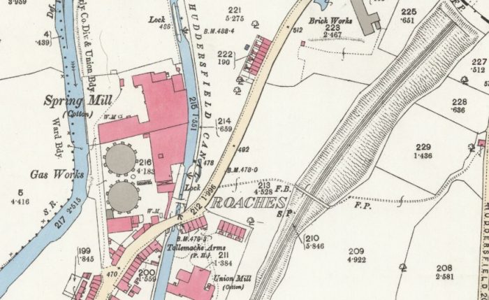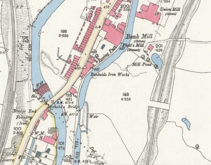 A 25″ OS Map extract from 1894 which shows the location of the Roaches, Bank Mill and Union MIll. [15]