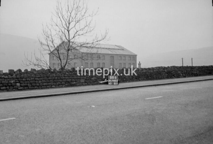 Corner of Greenfield Conservative Club, converted to housing in 2019. The bridge visible carries the Micklehurst Loop line over Chew Valley Road. This view is also looking to the South east but on the opposite side of Chew Valley Road, (c) Manchester Libraries. [41]