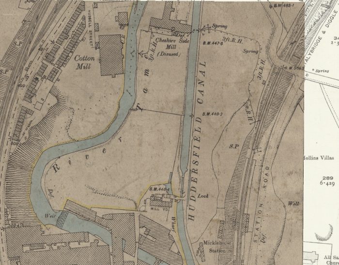 Cheshire Side Mill had by 1916 been replaces by Milton Mill (25″ OS Map drafted in 1916, published in 1922. [12]