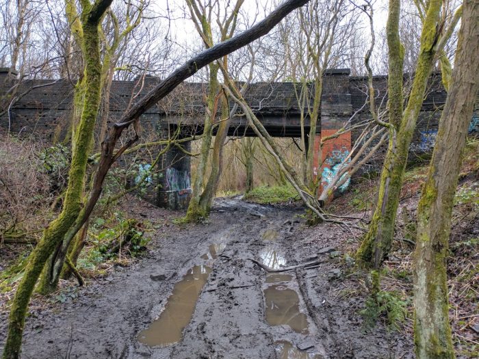 it was not far beyond this point that we had to leave the old track-bed as it would have sat on the now demolished Friezland Viaduct.