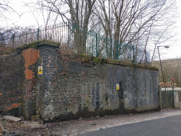 There was a viaduct at each end of Friezland Station as the image below shows. Friezland Viaduct, of twelve brick arches and 187 yards long, was to the West of the Station. Greenfield Viaduct was longer, it was a 16 brick-arch viaduct of 242 yards length with a large span over Chew Brook. Very soon after leaving the Greenfield Viaduct trains would have crossed another arch bridge of brick constriction which spanned Chew Valley Road. [43]