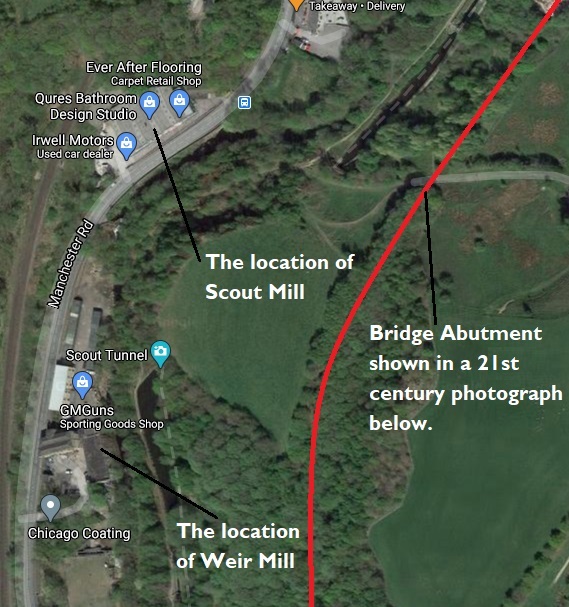 All three of the bridges mentioned in the text above no longer exist. The Mills here have gone and Mossley Gas Works are also long-gone, swept way after the change from Town Gas to North Sea Gas with the development of those offshore Gas fields.