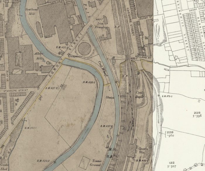 Spring Mill was owned by Buckley and Lees, Grace’s Guide says that it had 46,000 spindles, 30’/50′ twist. [16] It was positioned on the North side of the original Gas Works site as can be seen in the two map extracts above.