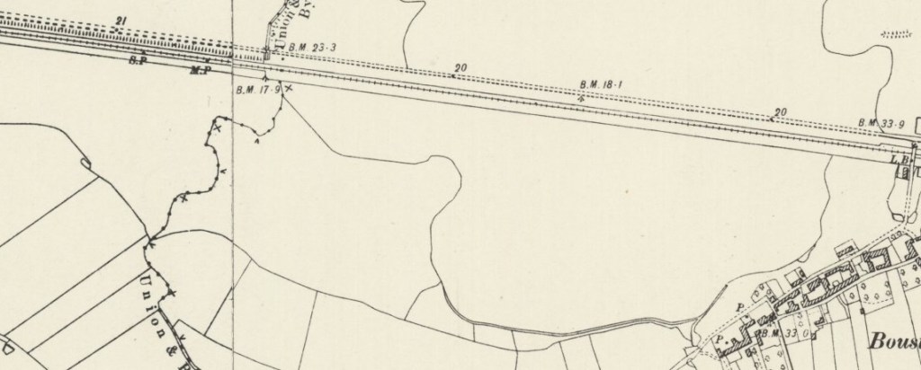 Returning to that 14.5 kilometres of line which John Fowler built close to the First Cateract. Although Fowler advocated a 3ft 6 in line for the route along the Nile, Hill says that he built that short section to standard-gauge. [12: p23] In 1881, it was converted to dual gauge ” by the simple expedient of laying a third rail to enable engines borrowed from the 3ft 6ins gauge railway at Wadi Halfa to draw standard gauge wagons.” [12: p23]