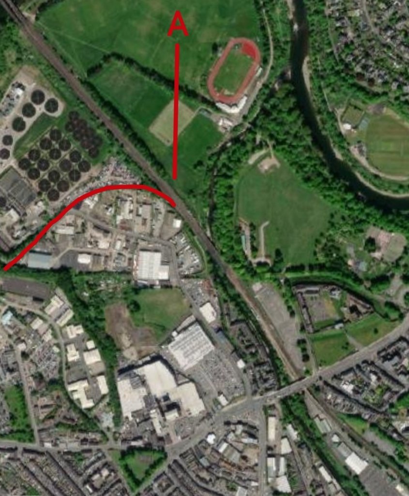 The ‘live’ line which leave Khartoum Central Station heading South West along side the White Nile, eventually crosses the southern suburbs of the city to rejoin the line heading Southeast close to the Blue Nile. This line can be seen marked on the satellite image above.