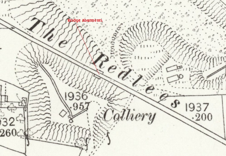 It seems to me to be unlikely that the tramway which used this bridge was directly associated with a larger network of tramways in the area. The map extract shows other short sections of tramway immediately at the colliery location and is seems highly likely that there was a need to cross Red Lees at high-level to reach the large slag heap to the North of the lane.