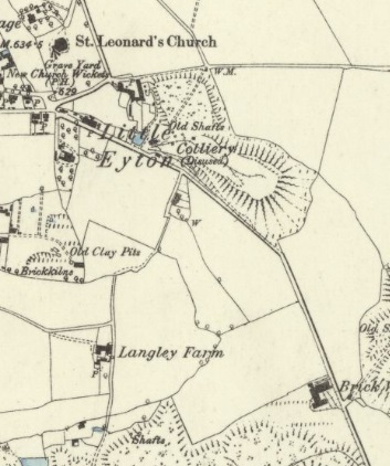 The website quotes Malcolm Peel, in his book, ‘The Pit Mounds of Dawley’ says that at Langleyfield: “There were at least ten shafts working at various times between 1803 and 1885, and they produced coal and ironstone. This large colliery was originally owned by the Coalbrookdale Company and in 1826 was sold to the Langley Field Company in which George Bishton and Adam Wright were partners. The colliery, ironworks and brick yard established here by Bishton and Wright were bought by Beriah Botfield in 1856, and after the breakup of the Botfield Empire the colliery was owned by the Haybridge Company.[7][8]