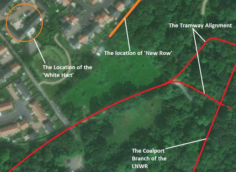 This article follows a tramway route which ran from the Dawley and Stirchley Railway Station on the LNWR Coalport Branch around the Hinkshay Pools across the back of the White Hart Inn (behind the row of cottages in the above picture) and then into the Stirchley Ironworks site.