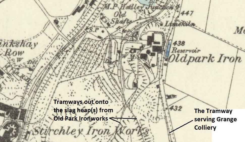 On the East side of the Canal/Railway the tramway line drifted round to the Northeast before entering what was the site of Old Park Ironworks. By 1881/2 there was a significant network of rails on the Old Park Ironworks Site. …