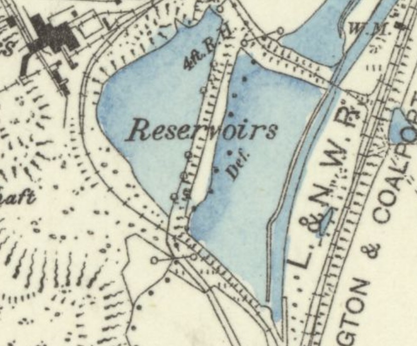 Immediately to the Northwest of the Pools was and Ironworks, shown on the map extracts above. It was already disused in the 1880s and does not feature on the 1901/02 OS map of the area. A relatively complex trackwork layout was still present in the 1880s, by 1901/02 just a single line curves round to the North east and runs along the Northern side of the Pools.