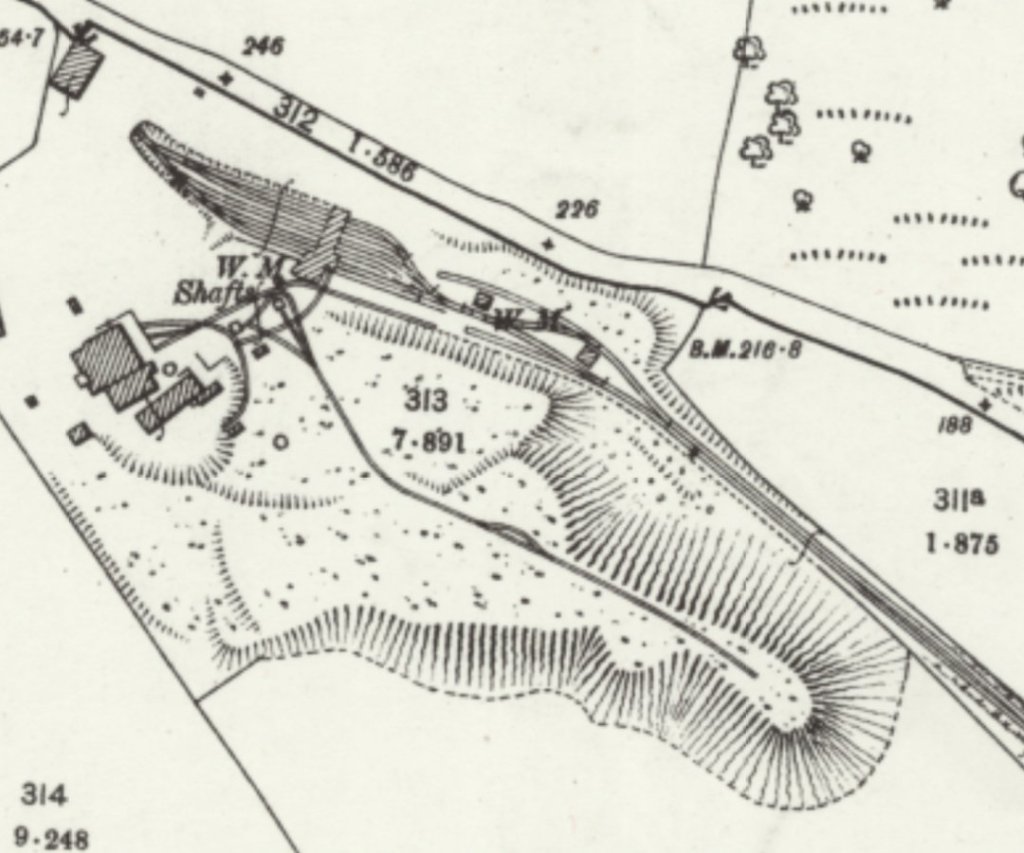 Grange Colliery probably opened by 1833. The extent of seams that could be worked was restricted by the Limestone fault, east of which the coal lay deeper. [21][17] By 1881 all the pits except Grange colliery had been closed. Despite the lease of mineral rights at Grange Colliery to Alfred Seymour Jones of Wrexham in 1893, the colliery was closed in 1894. [21][17]