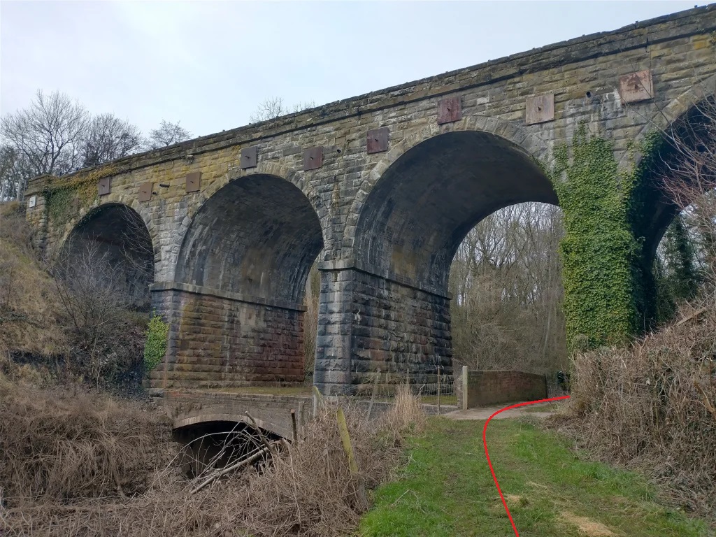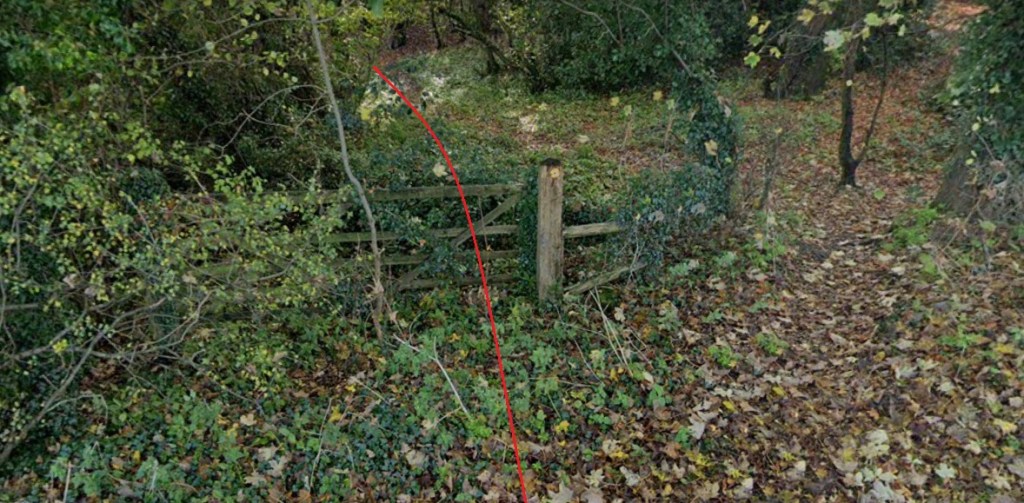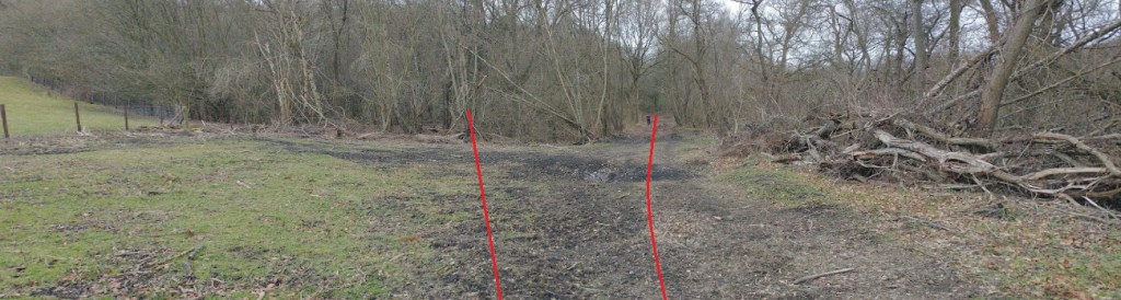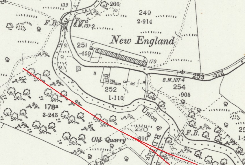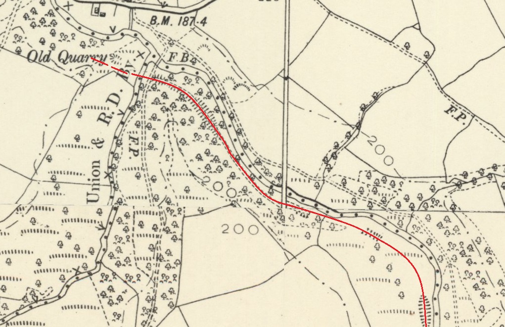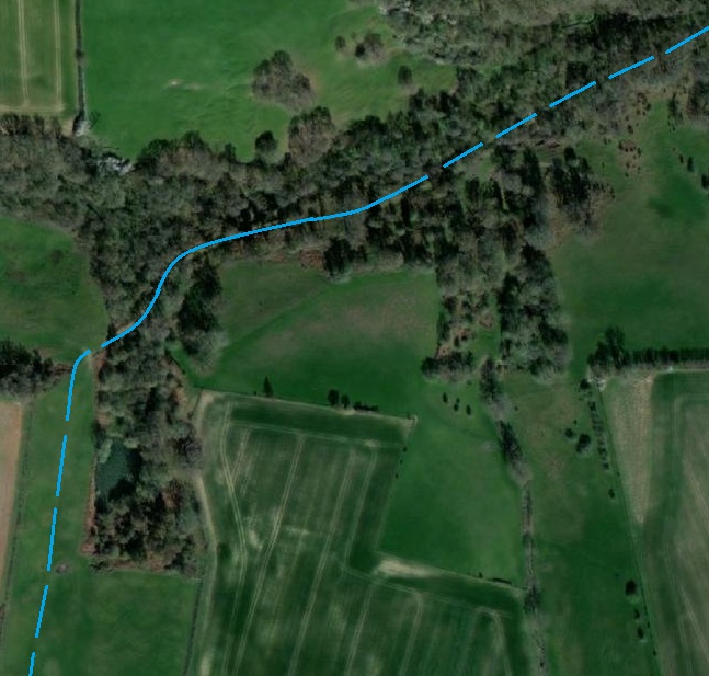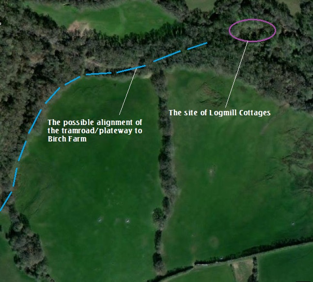 Our discussion about the old tramroad alignment is essentially speculative. We are in a better position than Savage and Smith were to trace routes using modern technology, but even so our possible route remains speculative. I have reproduced in in approximation on the same modern satellite image as were encountered above. Should it be correct, then some of its route can be followed and some locations can be photographed but all with a healthy sense of scepticism.