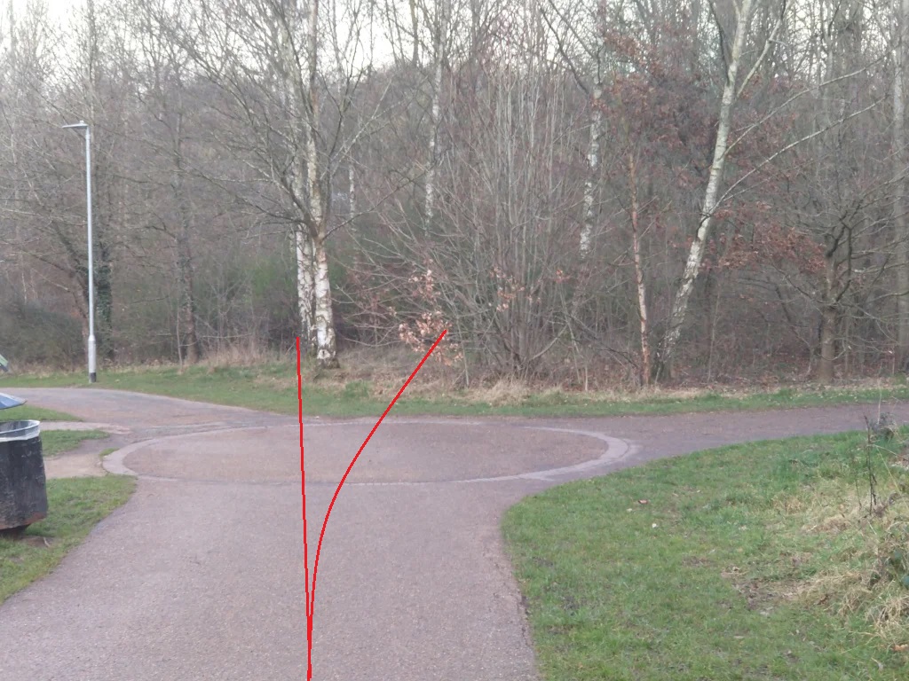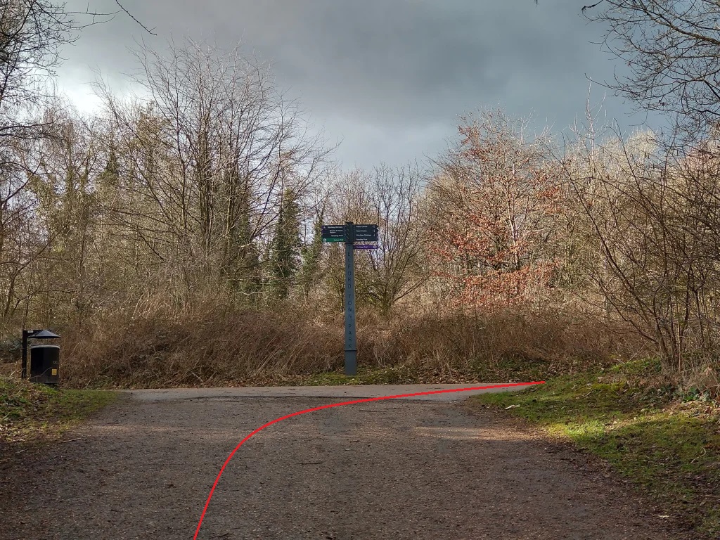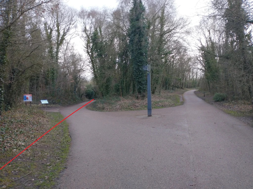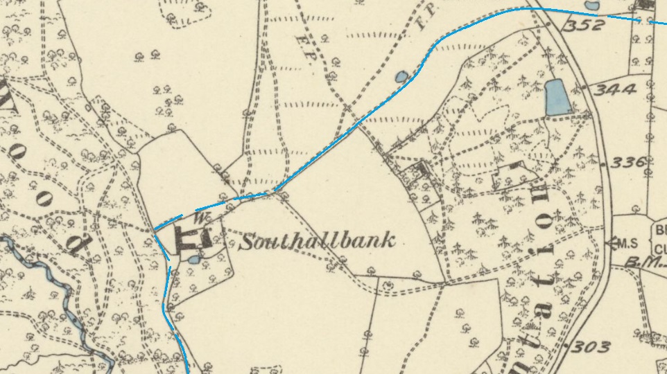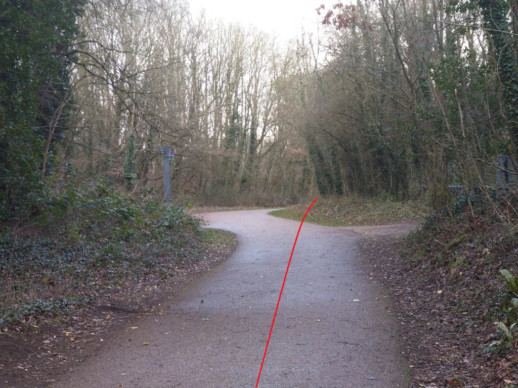 Our discussion about the old tramroad alignment is essentially speculative. We are in a better position than Savage and Smith were to trace routes using modern technology, but even so our possible route remains speculative. I have reproduced in in approximation on the same modern satellite image as were encountered above. Should it be correct, then some of its route can be followed and some locations can be photographed but all with a healthy sense of scepticism.