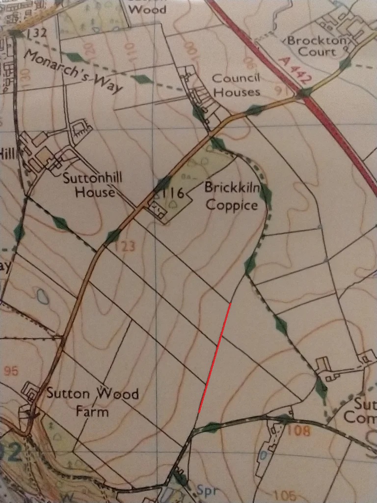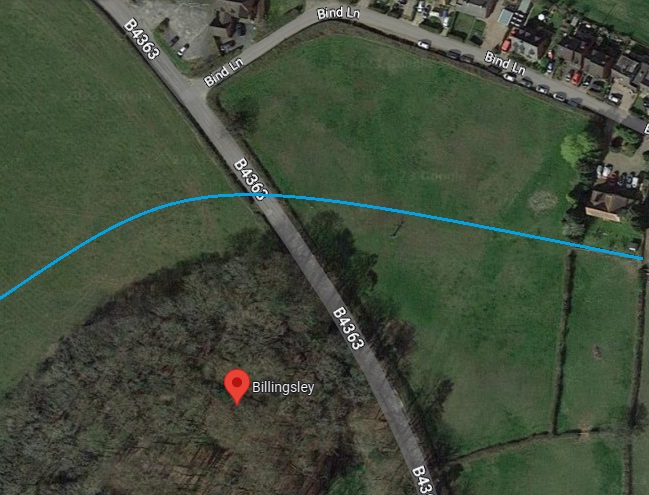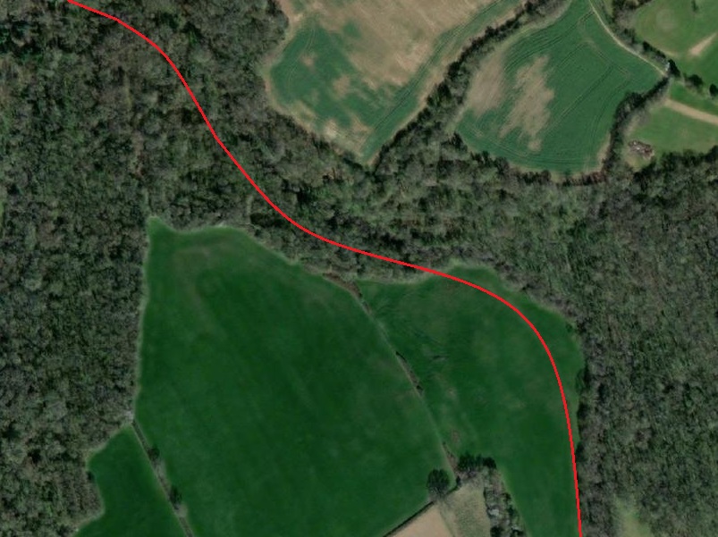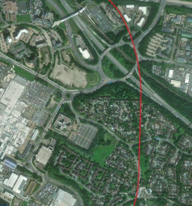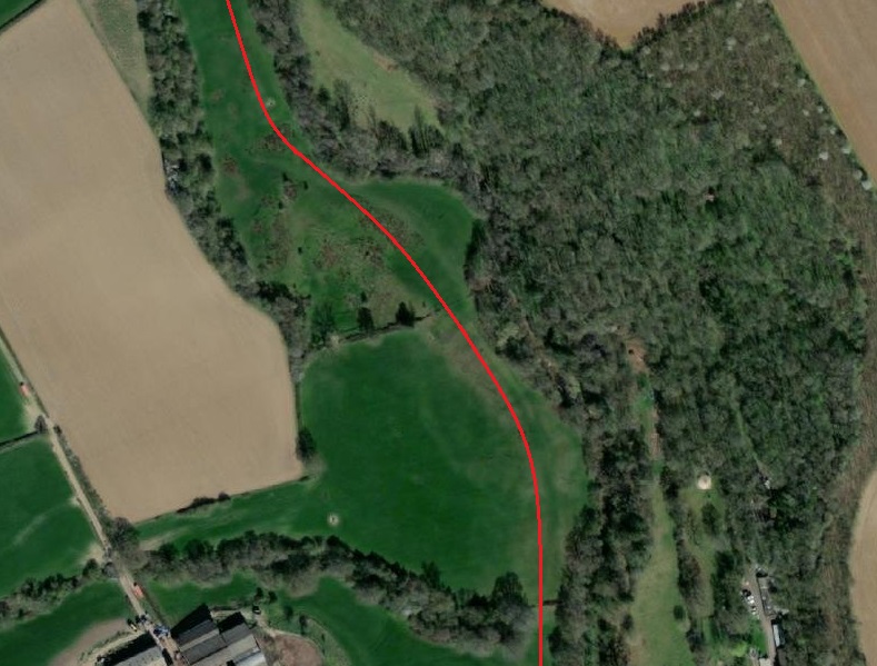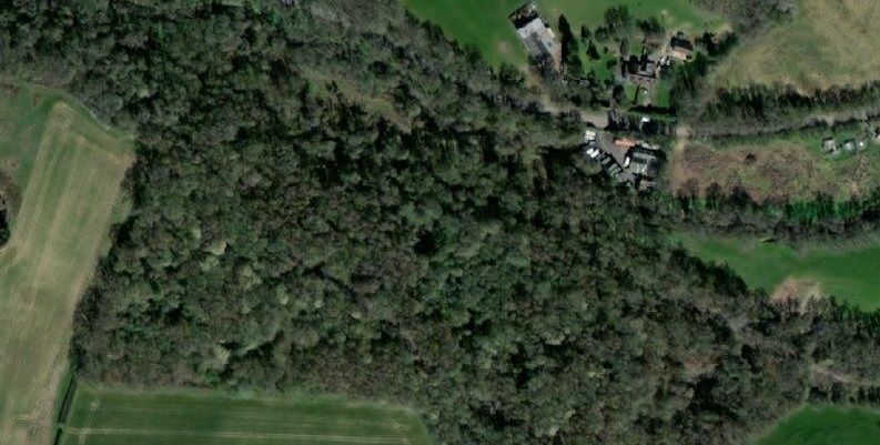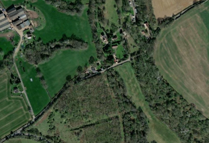 From the North side of the M54 as far as Hollinswood Road, the modern ladscape is heavily wooded and it would be impossible to pick out important features on the ground as the satellite image below shows.