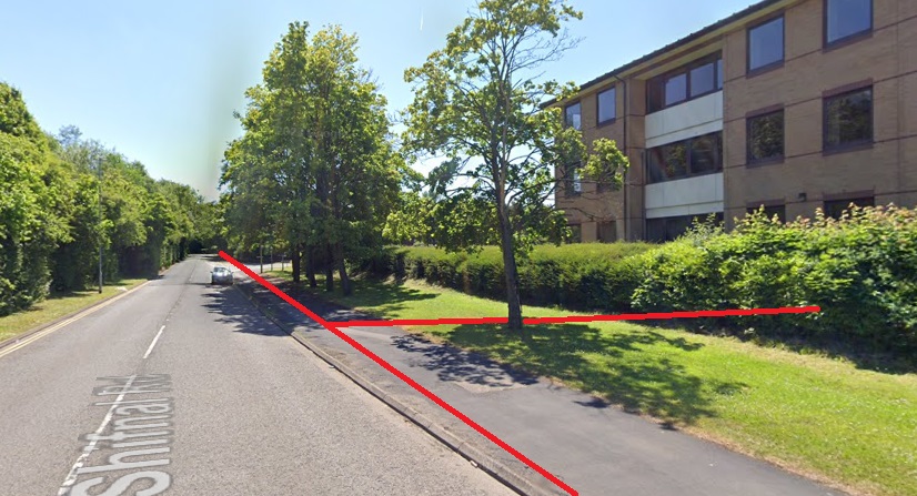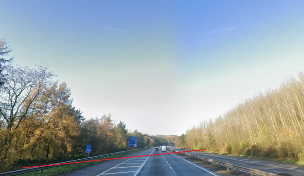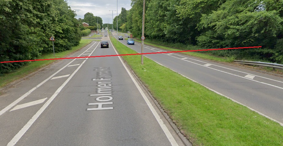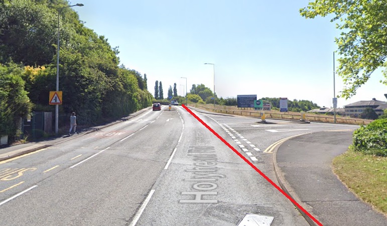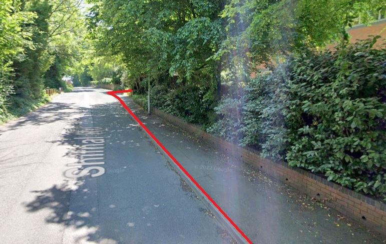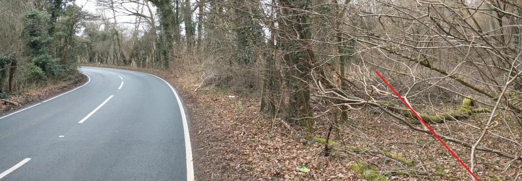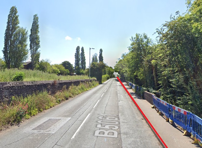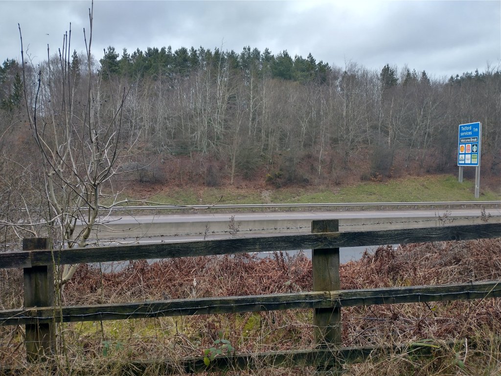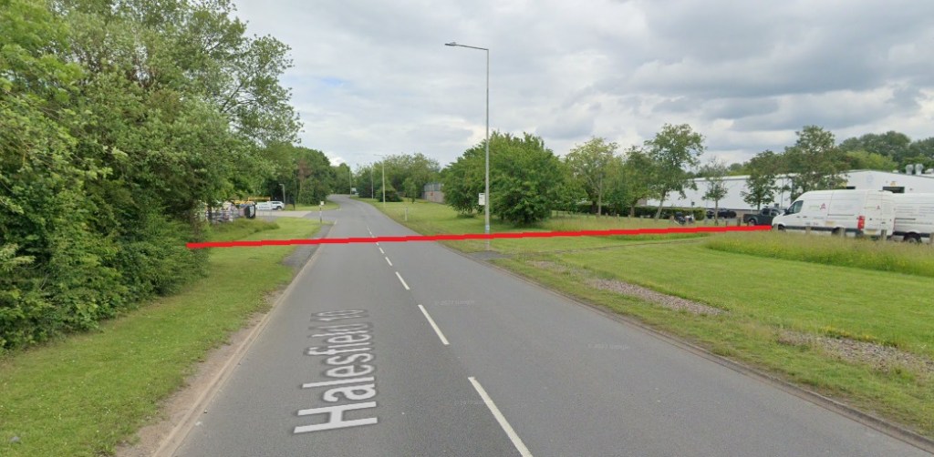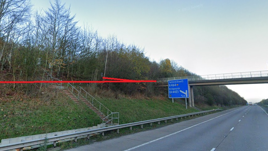 Apart from the A4169 at the bottom of the satellite image (which is already shown above), the only modern road which crosses the line of this section of the old tramroad Is Halesfield 18. Google Streetview images in this area were taken at the height of Summer in 2022 when vegetation was at its most abundant and as a result show nothing of note.