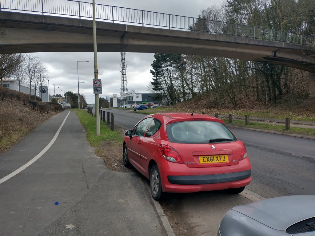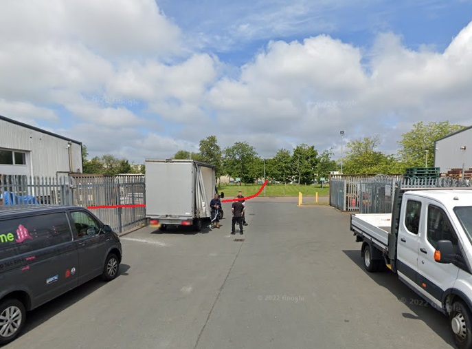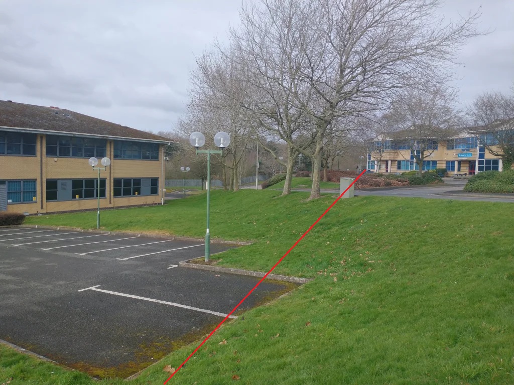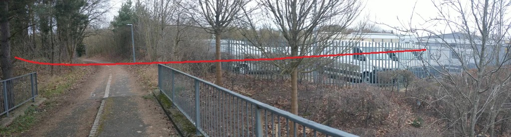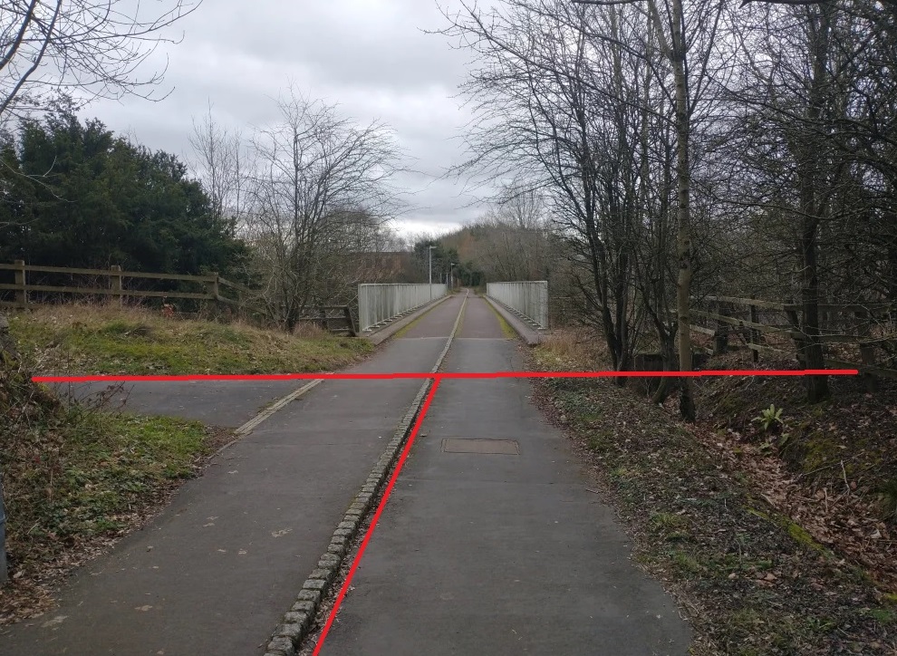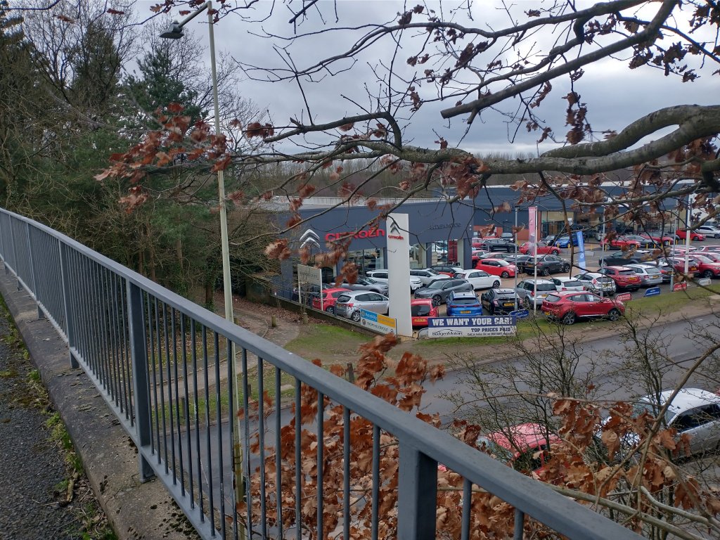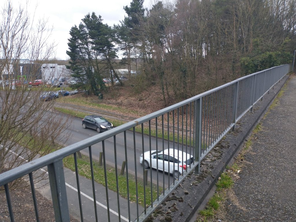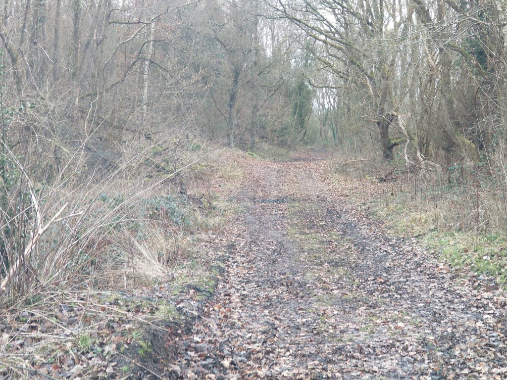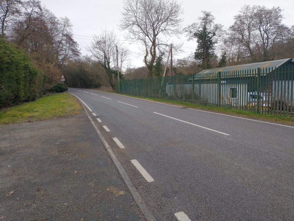 Beyond the buildings shown above the old tramroad route crosses the A442 slip road which is just beyond the industrial estate as shown below. …
