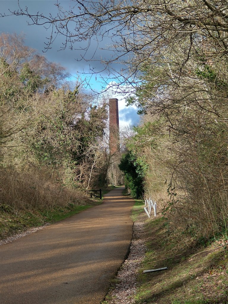 The next few photographs take us along the route of what is the old tramroad from Sutton Wharf and that of the GWR Mineral Line along the East side of Stirchley Chimney which still stands in the 21st century.