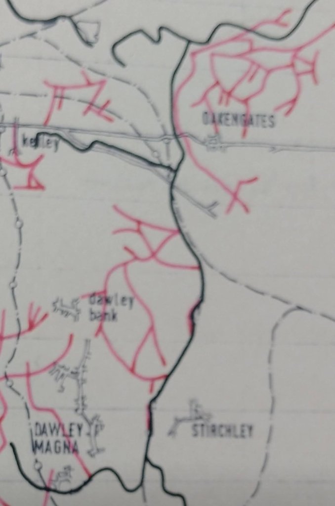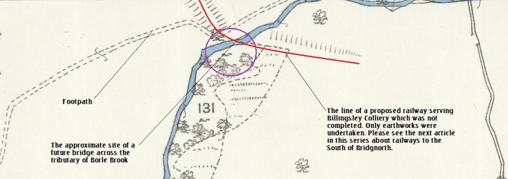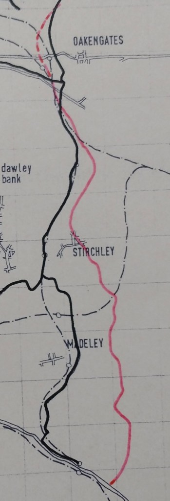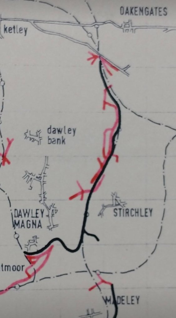 Missing from Savage and Smith’s 1″ to one mile drawings is the GWR branch parallel to the LNWR branch and running from the North down towards Stirchley. The route of that line is shown below in a turquoise colour on the mapping supplied by RailMapOnline.