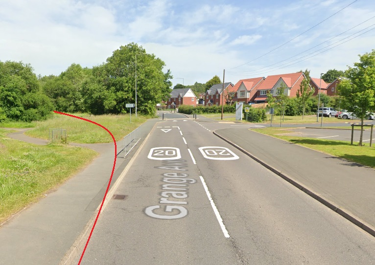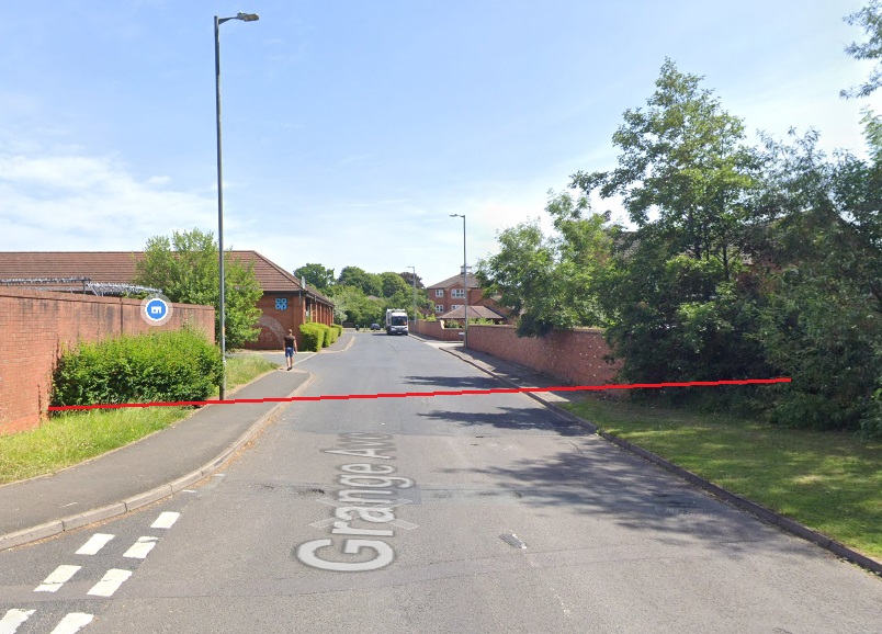 These images are taken at and around the site of Grange Colliery. On the image above, the spoil heaps from the colliery were immediately off-screen to the left the colliery yard ahead to the North. The image below was taken a from a point just to the North of the bins awaiting collection and looking to the left.