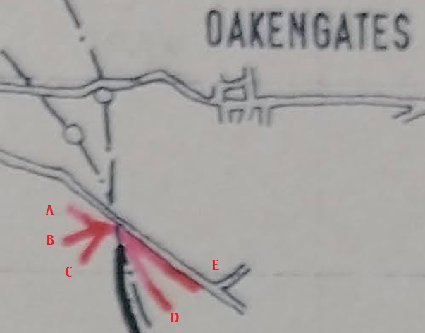 It is at this point that we leave the old line. We are close to Oakengates and there was at one time a very large number of different tramroads ahead, part of the Lilleshall Company’s internal network. We will pick up this tramroad when we look at that network.