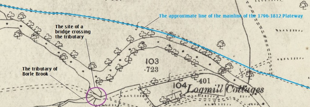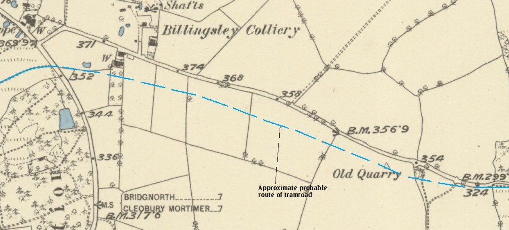 Savage and Smith provide some information about the line in their research in ‘The Waggon-ways and Plateways of East Shropshire‘. They provide two different series of drawings – the first set are 1″ to a mile plans relating to specific eras in the development of the local tramroads. The extract here is taken from the plan which relating to 1801-1820. [2: p85]