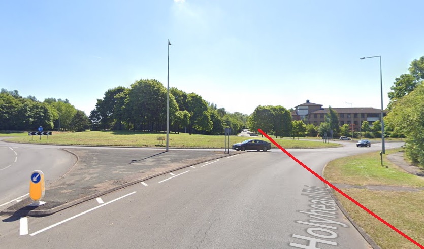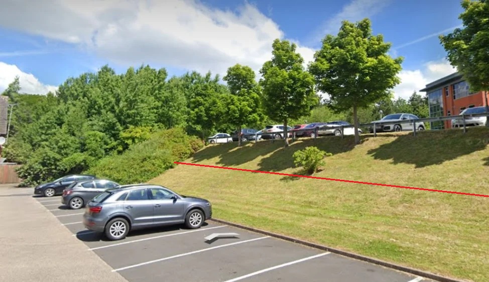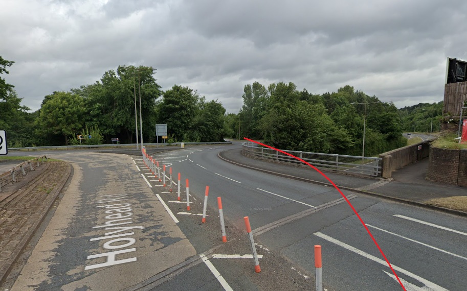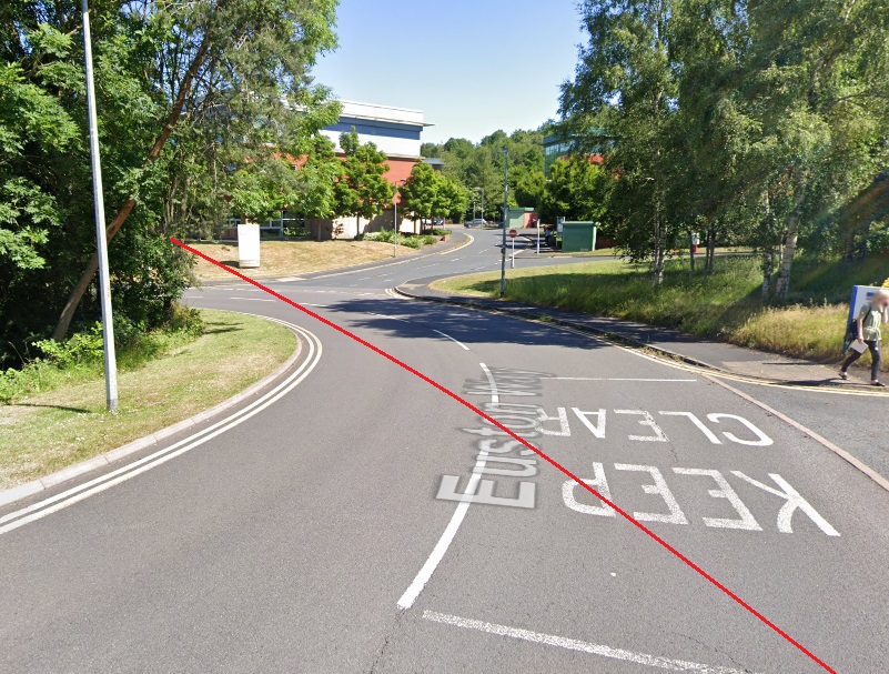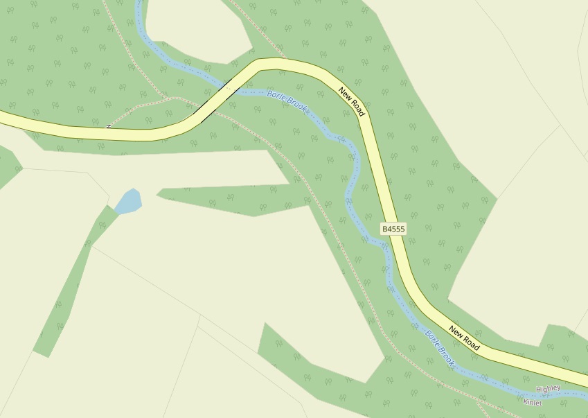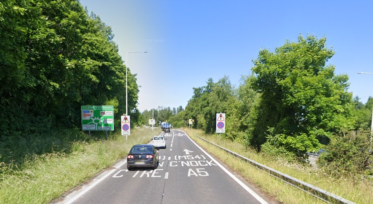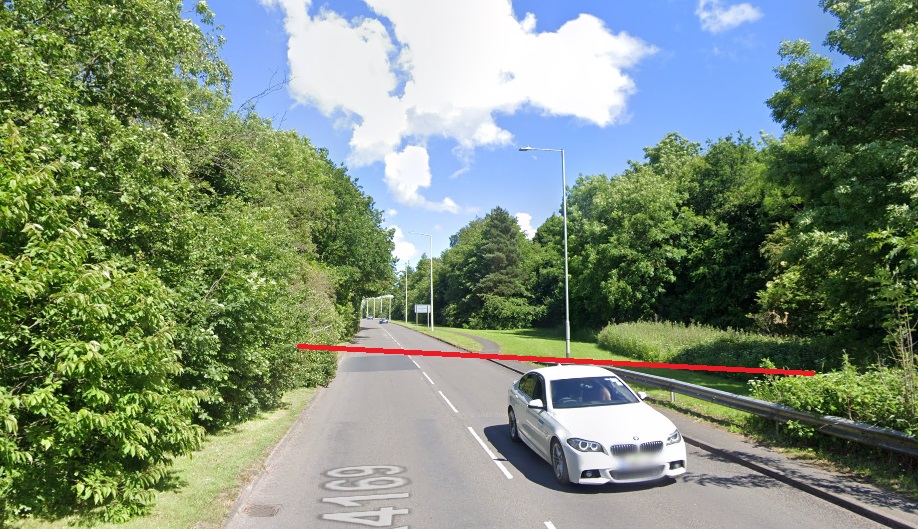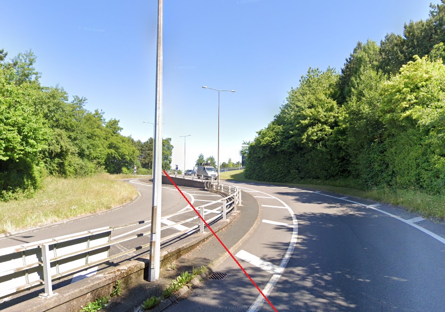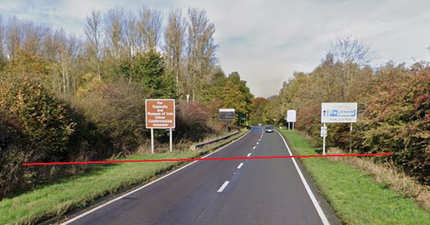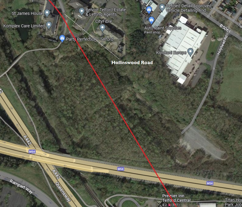 Apart from the A4169 at the bottom of the satellite image (which is already shown above), the only modern road which crosses the line of this section of the old tramroad Is Halesfield 18. Google Streetview images in this area were taken at the height of Summer in 2022 when vegetation was at its most abundant and as a result show nothing of note.