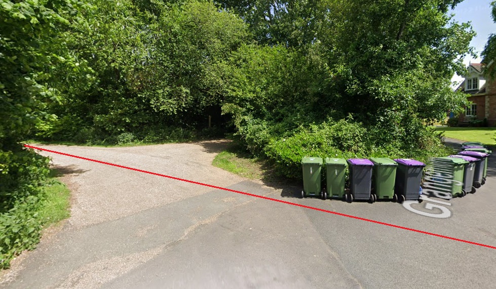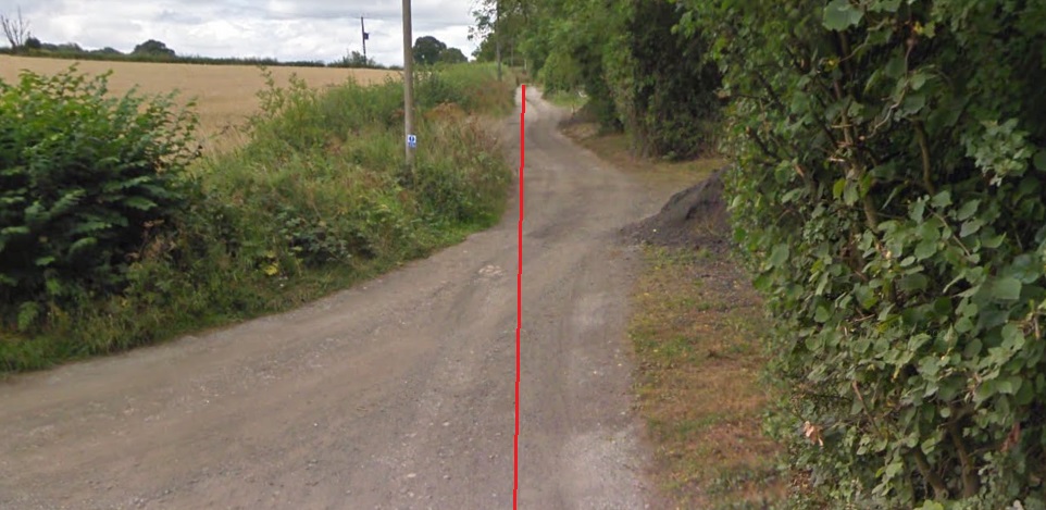 These images are taken at and around the site of Grange Colliery. On the image above, the spoil heaps from the colliery were immediately off-screen to the left the colliery yard ahead to the North. The image below was taken a from a point just to the North of the bins awaiting collection and looking to the left.