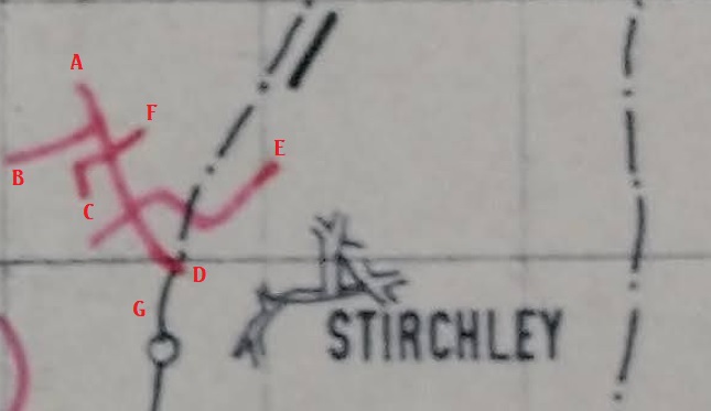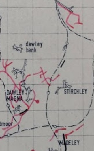 Missing from Savage and Smith’s 1″ to one mile drawings is the GWR branch parallel to the LNWR branch and running from the North down towards Stirchley. The route of that line is shown below in a turquoise colour on the mapping supplied by RailMapOnline.