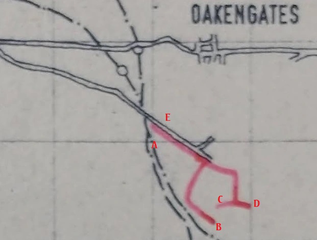 It is at this point that we leave the old line. We are close to Oakengates and there was at one time a very large number of different tramroads ahead, part of the Lilleshall Company’s internal network. We will pick up this tramroad when we look at that network.
