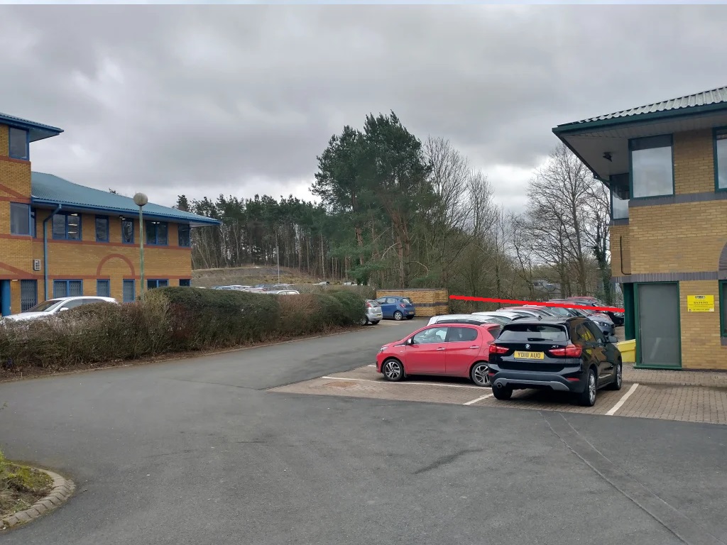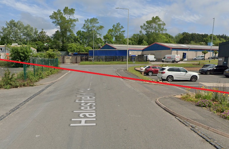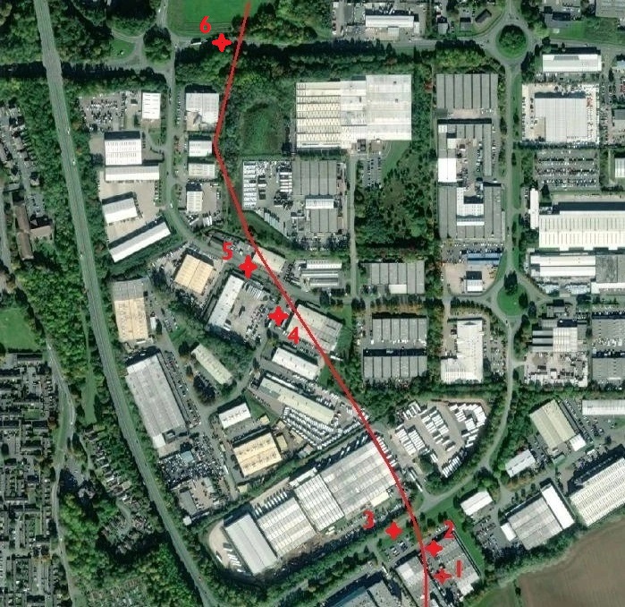 Beyond the buildings shown above the old tramroad route crosses the A442 slip road which is just beyond the industrial estate as shown below. …