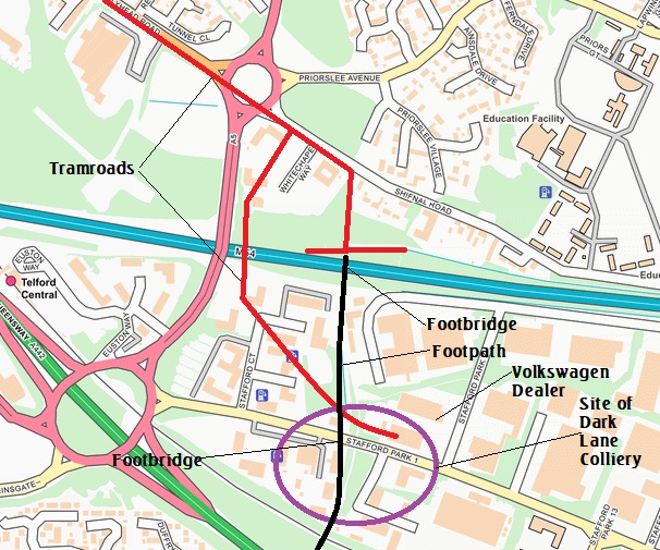 Savage and Smith also only show the line running to the North of Dark Lane, rather than around the West of Oakengates. With these provisos Savage and Smith show much of the length of the Sutton Wharf tramroad.