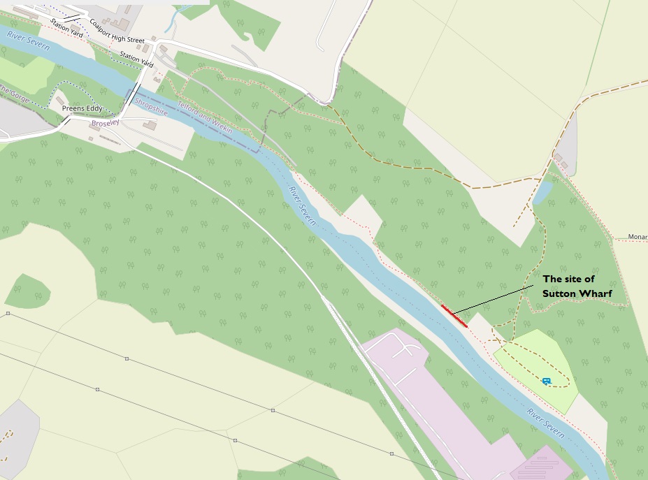 The 6″ Ordnance Surveys of 1881/82, published in 1883 and of 1901, published in 1902 show the railways serving the immediate area to the West and South of Sutton Wharf. The GWR Severn Valley Railway is to the South of the River Severn with its station close to Bridge Inn. The LNWR Coalport Branch is on the North side of the Severn. The two stations are linked by Coalport Bridge.