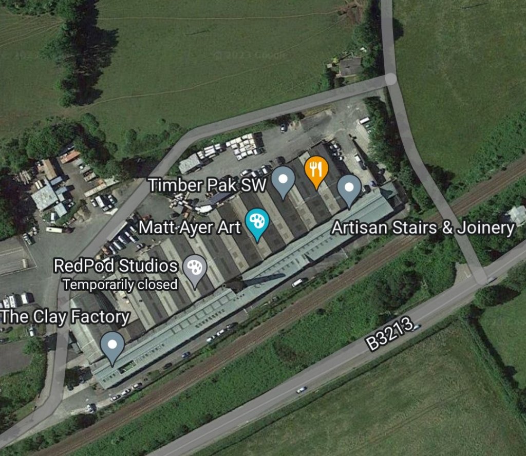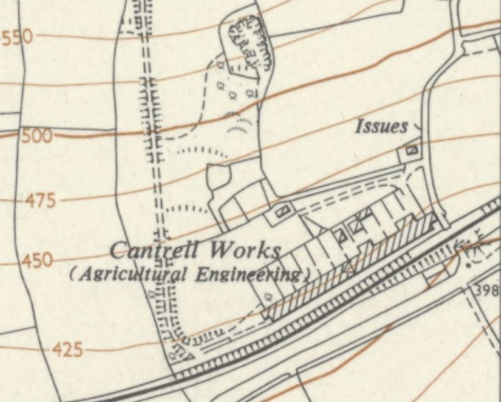 The location of the Clay Works at Cantrell, Devon. [Google Maps, 22nd March 2023][3]The China Clay Works at Cantrell, Devon as seen from the B3213. The B3213 was once the main A38 between Exeter and Plymouth. [Google Streetview, March 2023]The site which would host the China Clay Works at Cantrell in 1886. This is an extract from the 6″ Ordnance Survey of 1886. The site was essentially the same at the time of the 1905 Ordnance Survey which was published in 1906. [8]The Cantrell Works site adjacent to the Plymouth to Exeter main line as shown on the National Grid revision of the 25″ Ordnance Survey mapping of 1952, published in 1954. On this map extract the Works are referred to as Agricultural Engineering Works. The earthworks for the incline which linked the Works to Redlake can be seen to the left of the works complex. [9]