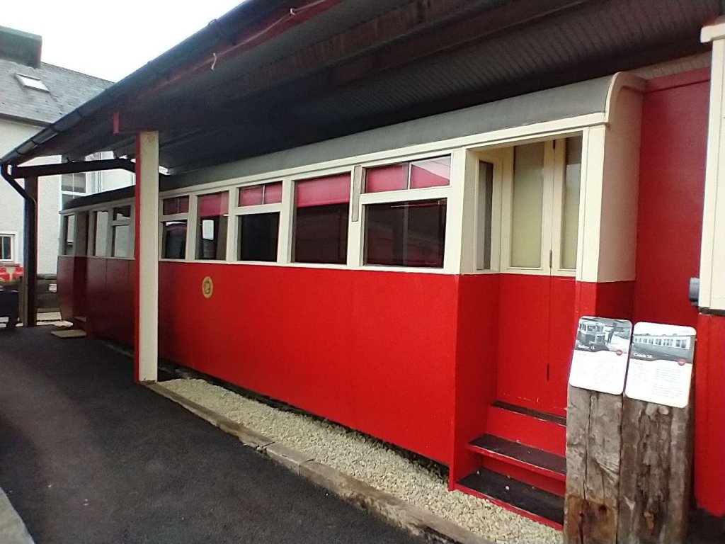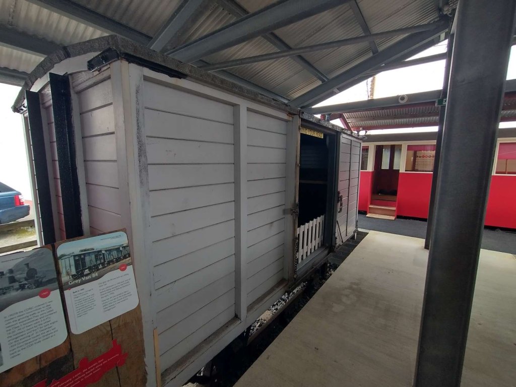 The Red Van in its new location: the text on its display board reads: Built in 1887, Metropolitan Carriage & Wagon Company for the Clogher Valley Railway. Red Vans only transported goods. They were for lighter use, up to the capacity of 2 tons. The Clogher Valley Railway (1887-1941) was a 37 Mike long narrow-gauge railway in County Tyrone and County Fermanagh. After the closure of the Clogher Valley Railway in 1942 the County Donegal Railway (CDR) bought all the red vans. These covered vans were converted to run behind the CDR Railcars. Our red van retains its original wooden chassis from 1887 and all original metalwork. [My photograph, 22nd April 2023]The Grey Van(No. 84) in its new display position: the text on its display board reads: Built in 1893, the Oldbury Carriage & Wagon Company. The grey vans were used for heavy freight up to 7 or 8 tons this could be the transport of livestock or general goods. Grey vans were normally only used in steam hauled freight trains. Our grey van 84 was built as a sliding door van.It was withdrawn in 1960 and sold off before being rescued by the NWIRS (North West Irish Railway Society) in the early 1990s. Grey Van 84 was stored in Derry where it was set on fire in the early 2000s. After the closure of the Foyle Valley Railway it was moved to Donegal town. [My photograph, 22nd April 2023]Coach No. 58</strong>: the text on its display board reads: Built in 1928, Coach 58 was built on a second-hand frame 41 feet and 3 inches in length. The CDR bought this coach along with two others in January 1952 from the NCC numbering them 57-59. Formerly Coach 318 became CDR 58. Coach 58 was one of the three most modern on the whole of the Irish narrow gauge lines. It came to the County Donegal Railway on the closure of the NCC (Northern County Committee) lines near Larne in 1950. Though Coach 58 was built on an original chassis from 1879, it provided modern accommodation for Donegal excursions, and later on as a railcar trailer until the railway closed. [My photograph, 22nd April 2023]: the text on its display board reads: Built in 1928, Coach 58 was built on a second-hand frame 41 feet and 3 inches in length. The CDR bought this coach along with two others in January 1952 from the NCC numbering them 57-59. Formerly Coach 318 became CDR 58. Coach 58 was one of the three most modern on the whole of the Irish narrow gauge lines. It came to the County Donegal Railway on the closure of the NCC (Northern County Committee) lines near Larne in 1950. Though Coach 58 was built on an original chassis from 1879, it provided modern accommodation for Donegal excursions, and later on as a railcar trailer until the railway closed. [My photograph, 22nd April 2023]Railcar No.15 passenger unit: the text on the railcar body’s display board reads: Built in 1936, Walker Brothers & the Dundalk Works (GNR). Railcar 15 was the first articulated Railcar. This means that the driver’s cab was separated from the railcar body. The railcar cost £2,275, seated 41 passengers and could transport a weight of 12 tons. The County Donegal Railway pioneered the use of diesel railcars introducing the first one in 1931. The passenger unit of railcar 15 survives here at the museum, restored after a period of dereliction following the railway’s closure in 1959. Railcar 15 was withdrawn in 1960 and was sold at auction in 1961.The body of Railcar 15 was acquired by the CDRRS in 1995 and moved to Donegal Town. [My photograph, 22nd April 2023]