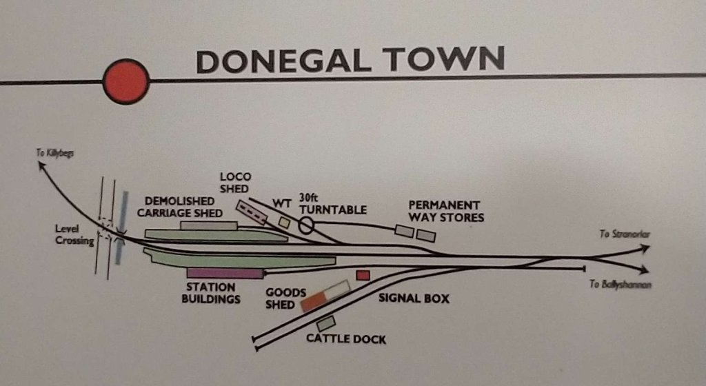 Donegal Town Railway Station was opened in 1889 and closed in 1959 it was about 19 miles from Stranorlar. The West Donegal Railway was opened between Stranorlar and Lough Eske (Druminin) on the 25th April, 1882. From 1882 to 1889, the journey between Stranorlar and Lough Eske took some 40 minutes and then passengers transferred to horse-drawn road cars for the last four miles down into Donegal. The fare was 6 pence. The final section to Donegal town was inspected on the 9th of September 1889 and opened on the 16th of September 1889. [My photograph, 22nd April 2023]Killybegs Railway Station opened in 1893 and closed in 1959. The journey from Killybegs to Donegal was 19 miles. The line out to Killybegs from Donegal Town was the result of government intervention some forty years after the famine. For the promotion of the local food industries (agriculture, fishing and food processing) a good transport infrastructure was needed. Railway travellers were reminded of their arrival in Killybegs by the intense smell of the fishmeal factory when entering the town. The Killybegs line served the local communities it passed with regular passenger and freight. In summer it was often the destination for excursions from Derry and Strabane. There are many fond memories of steam-hauled specials cautiously winding their way along the Atlantic coast. There is very little evidence of the station in Killybegs in the 21st century. Killybegs is now a thriving port which has seen major redevelopment. [My photograph, 22nd April 2023]Stranorlar Railway Station was opened in 1863 and was due to close in 1959, however, it remained open to goods until 6th February 1960 because road improvements necessary for lorries had not been completed by 31st December 1959. It was 13 miles from Strabane. Stranorlar Station was first constructed as a branch from the GNR station at Strabane. With the construction and operation of the West Donegal Railway to Donegal Town the station became an important junction. Stranorlar was at the heart of the Co. Donegal Railway network. The extensive layout of Stranorlar reflected its key role in all of the operations of the railway and it was the headquarters for all administration and the running of the system. Skilled jobs specific to the railway were signalmen, drivers, guards and shunters. Stranorlar Station and the associated offices, depots and fitters’ shops was a major employer. Practical skills included engineering, joinery, coachbuilding, foundry work, smithies and clerical workers. [My photograph, 22nd April 2023]Glenties Railway Station opened in 1895 and closed in 1952. It closed to passengers in 1947 and all traffic 1952. Glenties is 24 miles from Stranorlar. I have covered the branch in two previous articles.