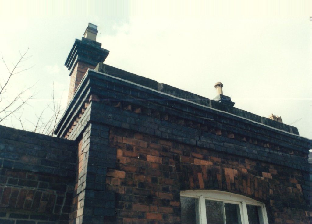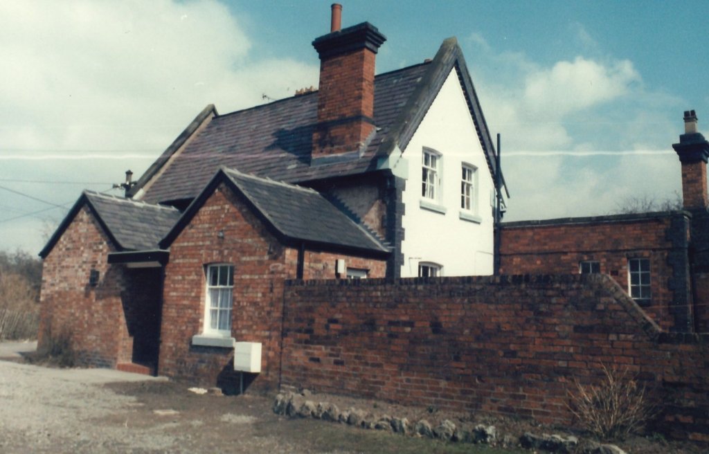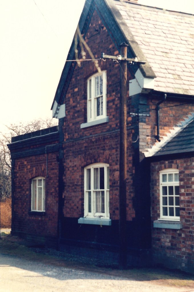 The main station building, which was similar to that at Coalport, was a typical LNWR design, incorporating a one-and-a- half-storey Stationmaster’s house at the rear, and an attached single-storey building, which contained the booking office and waiting room facilities. The single-storey portion faced on to the platform, and it featured two rectangular bays and a central loggia, which was fully enclosed by a wood and glass screen to form a covered waiting area. The residential block sported a steeply pitched slate-covered roof, whereas the booking office portion had a flat roof. The building was of local brick construction, with tall chimneys and slightly arched window apertures. This distinctive structure was erected, as were all the others on the line, by local builder Christopher Bugaley of Madeley. There was a detached gentlemens’ convenience on the Up platform, while facilities for waiting travellers on the Down platform comprised a small waiting room.