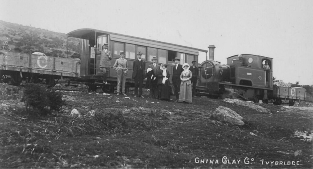 “In 1910 the newly formed China Clay Corporation Ltd, with headquarters in Ivybridge, built a single track, three-foot gauge, railway running eight miles from the drying sheds at Cantrell to the pits at Redlake, with a rise of over a thousand feet. The railway opened on 11th September 1911 but it was not until the end of 1913 that the works were completed and ready to commence production.” [39]