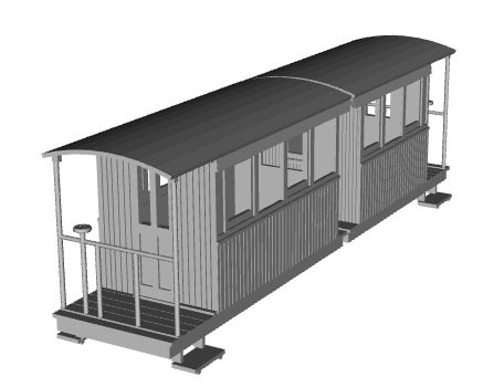 There were initially 3 bogie coaches. One bogie coach was later split it two 4 wheel coaches (one with 3 windows and one with 4), numbered 3 and 4. [49]