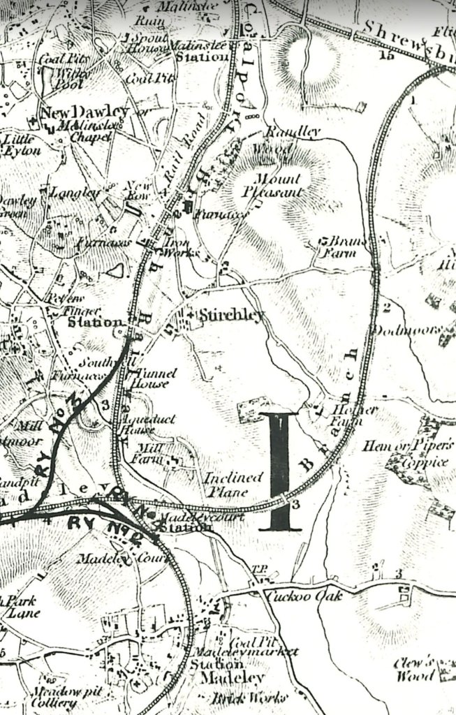 The Coalport line diverged from the Wellington to Stafford route at Hadley Junction, and ran south-eastwards via Wombridge goods station, at which point various private sidings branched out to serve Hadley Lodge Brickworks and other industrial concerns.