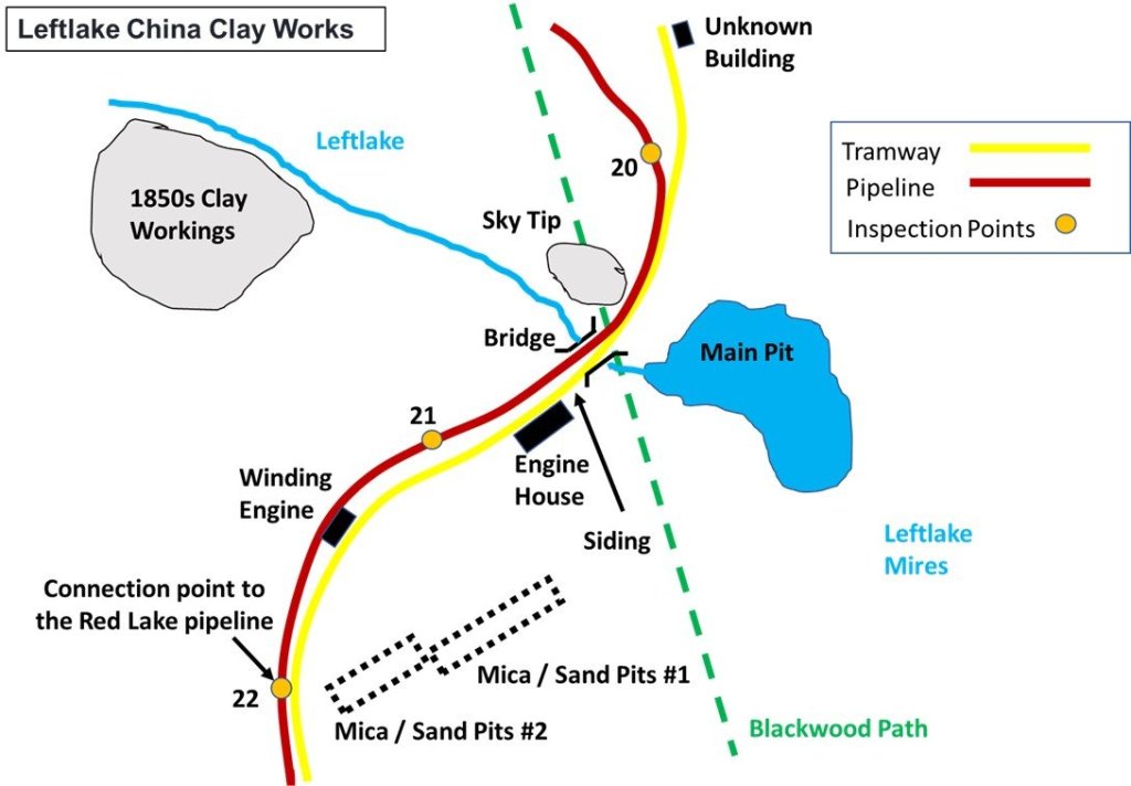 Dartmoor Explorations have produced an excellent webpage about the Leftlake clay workings which can be found here. [18]