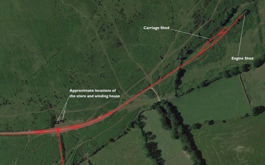 “At the southern end of the line remains the old bridge abutments of the track going over the incline which lowered wagons to give access to the standard gauge mainline, the trackbed of the incline, the base of the winding house, and at the line’s extremities the locomotive and carriage shed remains.” [5]