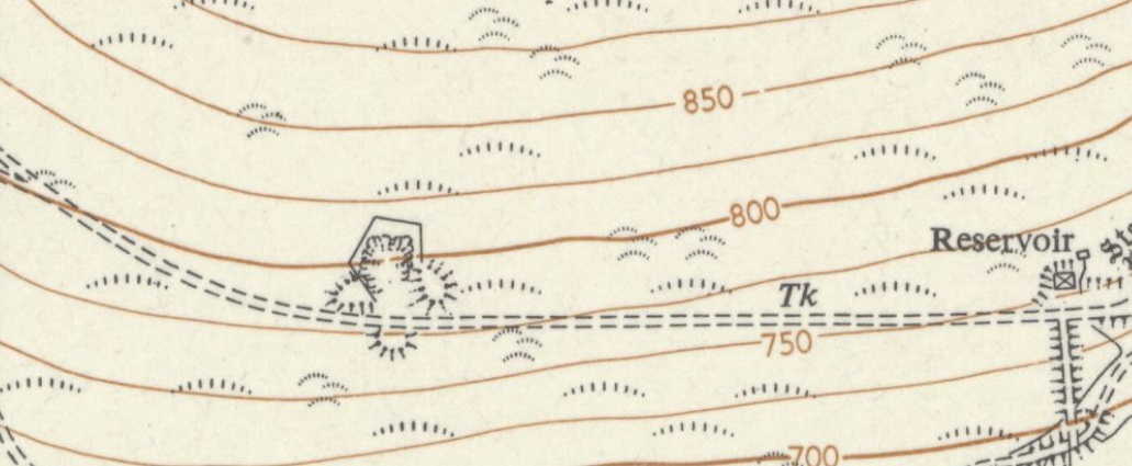 The locomotive would take the wagons West along the line passing to the South side of a quarry which had been used to provide ballast and construction stone for the line. All the while the tramway was rising steadily rather than just following the contours around Western Beacon. A relatively tight radius took the line round the western flank of Western Beacon. As it turned northward it crossed first the 800ft contour and then the 900ft contour.